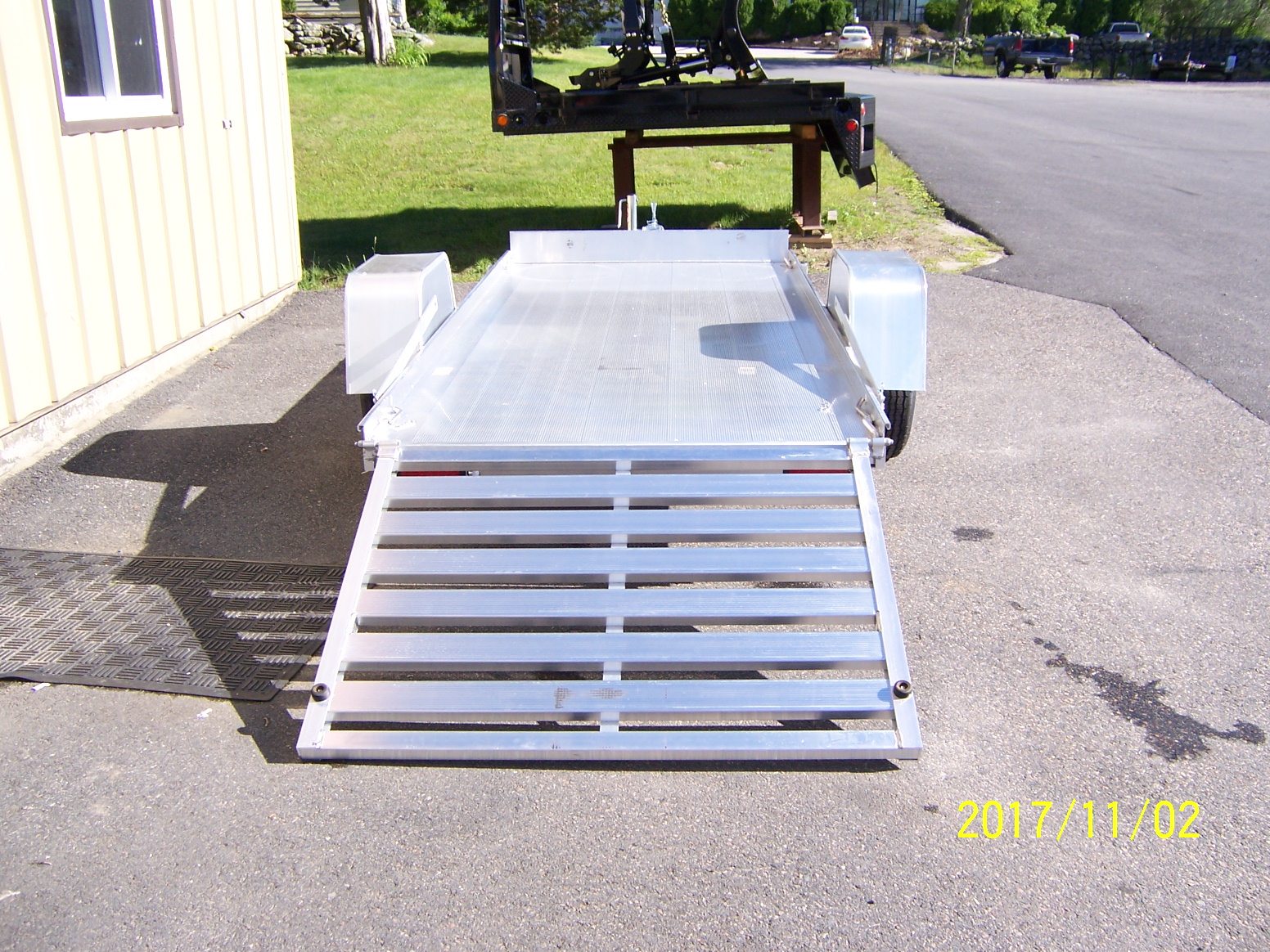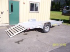 NEW Aluma trailers. 5410 54"x10" Extruded aluminum deck, torsion axle, 13" radials with aluminum rims, stake pockets and L.E.D. Lights, fold up jack. Bi-Fold gate. CURRENTLY OUT OF STOCK!!