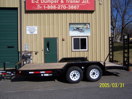 | | Anderson Mfg. 5 ton Equipment Trailer. Adj. coupler, 7,000 lb. drop foot jack, wrapped tongue, HD Dia. plate fenders L.E.D.lights, P.T. decking, dovetail. (CURRENTLY UNAVAILABLE) | |